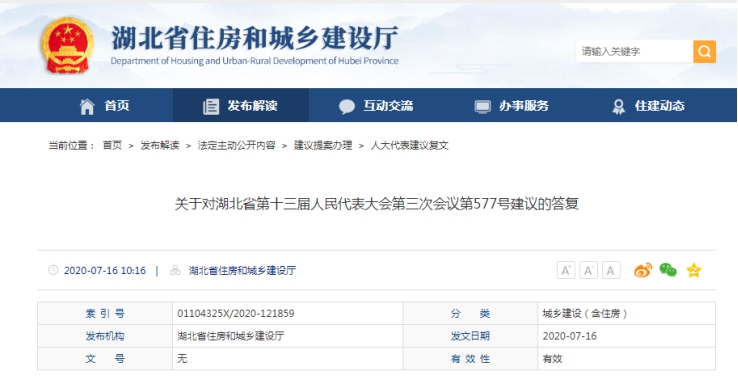 关于对湖北省第十三届人民代表大会第三次会议第577号建议的答复